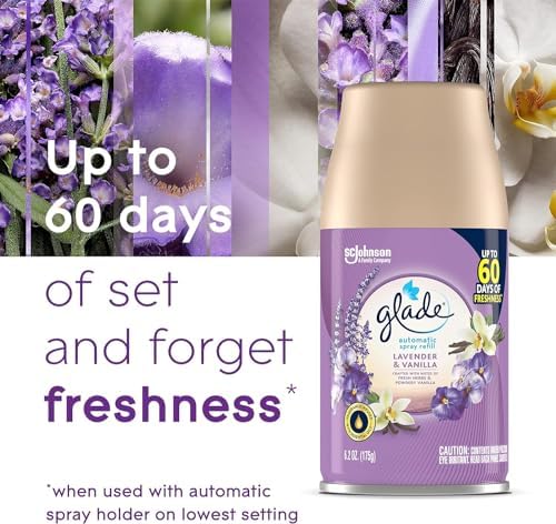 - Relax your mood with Glade automatic spray with notes of lavender, jasmine, and vanilla