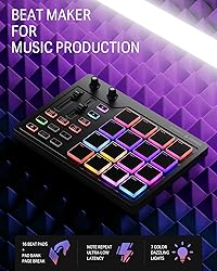 16 Pad Controller with customizable lighting: The midi drum pad STARRYPAD's 16 soft silicone backlit pads can trigger drums, samples, effects and more; One button push allows you to quickly switch between 3 different pad banks for a total of 48 assignable pads; In addition, the beat maker STARRYPAD comes with adjustable velocity sensitivity curves. Perfect for all music makers Additional Control: STARRYPAD midi controller has an additional 2 faders, 2 knobs, and 3 buttons, to customize and match your virtual instrument. The Shift Key brings in another layer of customized control Compatibility: The beat machine STARRYPAD is class-compliant to work with everything and comes with a standard USB C power supply and data interface for easy plug and play; Tips: if you want to connect to your iPhone or iPad, you need to buy an Apple Lightning to USB Adapter; The additional MIDI in/out (Cable included) allows you to connect to an external synthesizer or other vintage MIDI equipment Customizable lighting: The MIDI controller pad STARRYPAD backlit pad lighting with 7 vibrant colors. Helps you group your instruments with a visual reference; Tips: the editor only can set this drum pad, doesn't have the function of recording and arranging music Boost Your Rhythm Game: Worried about a weak sense of rhythm? Tap Tempo is directly synchronized with DAW to help you quickly grasp the BPMs of any song and play along. In addition, Note Repeat's ultra-low latency perfectly connects each sample segment without getting stuck or errors! This USB drum pad controller suits you Various Compatibility: The beat pads for music production are currently compatible with Android, iOS, Mac, and windows; The midi Pad drum machine needs DAW software to sound, it doesn't sound alone; The color of the pads can be set like the main picture through software; You can watch the guide videos or download guidance manuals to set up Courses & DAWs: Also, the drum machine includes Melodics Courses & Cubase LE Software Kit for music production; Remember to get the code from the customer service team and enjoy your musical journey