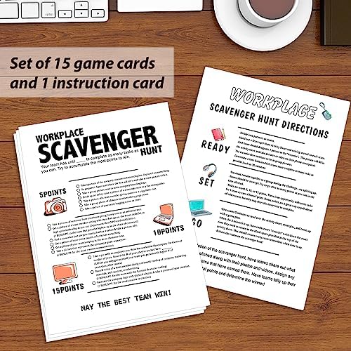 - Este es un juego de tema de fiesta de oficina, que incluye 1 guía de búsqueda del escavader en el lugar de trabajo, 15 tarjetas de búsqueda del escavader en el lugar de trabajo, el tamaño es 8X11 pulgadas.
