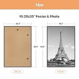 SIZE: 20x30 poster frame is designed in a modern style and is suitable for hanging on any wall in home, office, photo studio, art gallery, school exhibition hall. You can use them for Video Game, Movie posters to redecorate anywhere. Upgraded Material: These light-weight picture frames use upgraded plastic material, Scratch-proof and durable. And a thicker plastic cover with a protective film (prevent scratches) keeps posters better preserved. Before use, please tear off the bothside film. EASY to INSTALL: The frame strips can be easily assembled by sliding together, which is especially for large size poster frames to achieve the lightness. The frame back comes with 2 pcs sturdy hangers that can be hung vertically or horizontally from the wall. PRECIOUS GIFT: The frame is suitable for any style of photo, such as art prints, children's artwork, Video Game, Movie posters. It is the perfect gift for your family or friends on anniversaries, weddings, birthdays, Mother's Day, Father's Day, Thanksgiving, Christmas. SECURE PACKAGE: Each frame is individually plastic sealed with corner guard and finally overall sealed to ensure safe shipping and avoid damaged. Strong collisions may cause the frame corners to separate, just simply slide the strips to get a intact poster frame again.