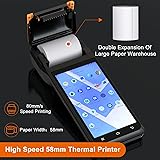 58mm POS Thermal Receipt Printer Android 8.1 OS Touch Screen, 40MM Diameter Paper Roll Capacity, Support 3G/4G/5G, Wi-Fi Network, Bluetooth , Compatible with 98% of Android Apps ,Support Nano SIM+TF , With NFC card recognition. 58mm POS Thermal Receipt Printer Android 8.1 OS,Usb: Support USB OTG.support developers to debug and use .Deca-core/10 cores MTK. Handheld PDA printer comes with Google Play and supports the following software, Shopify, Google Chrome, PDF, Loyverse, iREAP, and Kyte, Support Google Play software download.No need for secondary development.which allows accepting the order and print receipt in one POS , 90mm/s boosts 20% working efficiency. POS Receipt Printer inside 3200mAh 7.6V battery lasts the whole day even in the most demanding situations.Work with android app, make bill printing, mobile payment, ordering, takeaway, queue control, marketing management, make all-in-one POS. Terminal printer POS is portable, 0.7in body, 0.9lb weight , also with a 5.5-inch touch screen, also can scan 1D/2D.QR barcodes by the camera.(The camera mainly decodes 2D codes.and the ability to decode 1D codes is relatively weak) It is a combination of Bluetooth thermal printer and mobile phone, so that you can save your money and space, Widely used in food trucks, cafes, drink & food, pizza, bakery, restaurant, grocery store, fashion & boutique, convenience store, jewelry, carwash.
