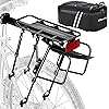 - 【High Quality Materials and load 310lb】The bike rear rack is made of high quality hard Aluminum Alloy. Also,durable TIG-welded and heat-treated process ,especially Thickened frame and main tube.Smooth rust-proof coating not only ensures beautiful appearance,but also makes you ride freely in rainy humid conditions! All these make the bike luggage rack easy load 310lb, which helps you easily transport your luggage, used with panniers, backpacks, baskets, etc.