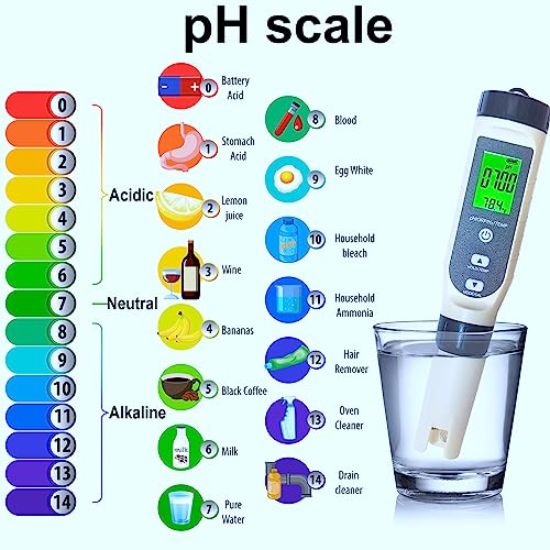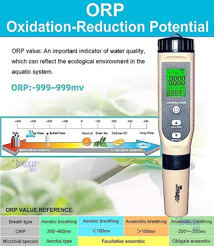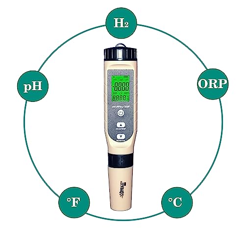 - [4-in-1 water quality meter] It can measure pH / ORP / H2 / Temperature. The measurement range is large and wide. Pocket-sized and multi-functional, Ideal for household and laboratory liquid testing applications, including drinking water, swimming pool, pond, beer brewing, kombucha, aquariums, hydroponics, laboratory, food processing, etc