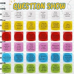 Full set: 12 dice as a set, a total of 5 sets, a total of 60 dices; Enough conversations dice to meet the needs of your different parties; They are suitable for those who seek to improve communication skills, overcome shyness and improve social skills Quality Material: these conversation cubes are 0.78 inch/ 2 cm in diameter, small and exquisite; Made of quality wood, they are lightweight and sturdy, safe and odorless, with smooth surface and rounded edges, it is very comfortable to hold and roll Fun and Interactive: wooden conversation dices provide a fun and interactive way to start conversations and encourage deeper, more meaningful communication; They're suitable for parties, family game nights, and bonding with friends and coworkers Rich Color Selection: wood activity dice set comes with 6 bright and vivid colors, including red, yellow, blue, green, purple, and white; This variety of colors makes the dices a visually attractive addition to any social occasion or game Wide Range of Applications: these wood question dices are versatile and can be applied in corporate settings for team building, educational settings for group discussion activities, and personal settings for family and friend gatherings
