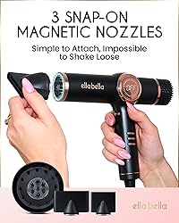 Revolutionary Ionic Technology: Experience the magic of ionic hair care. Our advanced hair dryer harnesses THE POWER OF NEGATIVE IONS TO TRANSFORM YOUR HAIR, leaving it naturally smooth, irresistibly soft, and gorgeously shiny. Say goodbye to frizz and hello to salon-worthy results every day Versatile Beauty for ALL HAIR TYPES: No matter your hair type or texture, the Ella Bella Hair Dryer is your ultimate companion. With MULTIPLE HEAT SETTINGS to choose from and INTELLIGENT HEAT CONTROL, you can customize your drying experience to suit your specific hair type Efficiency Redefined: Featuring RAPID DRYING SPEEDS, you'll achieve impeccably dry hair in record time, allowing you to seize the day with confidence and style. No more waiting around – ENJOY QUICK, EFFICIENT RESULTS without compromise Comfort and Tranquillity: lightweight design that FITS PERFECTLY IN YOUR HAND, reducing strain and ensuring easy manoeuvrability. Moreover, its LOW NOISE TECHNOLOGY guarantees a serene and peaceful drying experience Unleash Your Style: Discover endless possibilities with THREE MAGNETIC NOZZLES, allowing you to EFFORTLESSLY ACHIEVE DIVERSE LOOKS that match your mood and occasion. From sleek straight locks to voluminous curls, the Ella Bella Hair Dryer empowers you to express your unique style with ease. Please refer to HowTo video next to product images for usage instructions