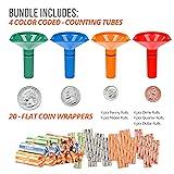 Coin Storage & Sorter Tubes 4 Color – Coded Coin Counters Tubes and 20 Pcs Assorted Coin Wrappers