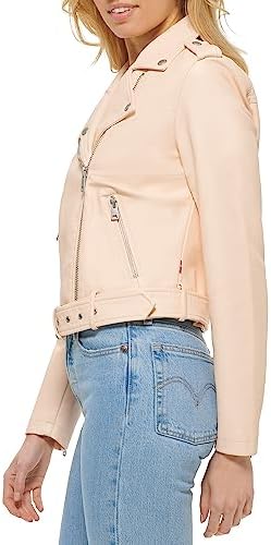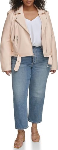 Levi's Women's Faux Leather Belted Motorcycle Jacket (Standard and Plus Sizes), Peach Puree, 2X