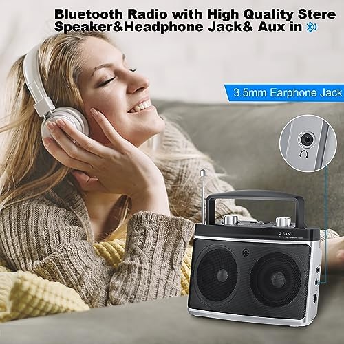 - 【Bluetooth Stereo Radio with High Quality Speaker&Headphone Jack& Aux in】- The AM FM Radio support bluetooth function to connect any Bluetooth device to enjoy music with high quality speakers. Also Simply plug in any headphones with a 3.5mm jack for a private listening space on the go.