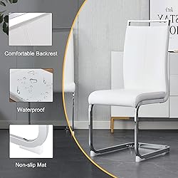 Modern and stylish match: 71 inch large tempered glass dining table and high quality faux leather dining chairs are a combination of simplicity and style with fresh colors, a perfect match for your dining room and kitchen. This dining table and chairs set for 6 will enhance the dining comfort for you and your family Tempered Glass Dining Table: This dining table set for 6 is made of high quality tempered glass, which is corrosion resistant, scratch resistant and high temperature resistant. The thickened electroplated metal legs have a strong load-bearing capacity and are rust-proof for long-term use White Faux Leather Dining Chairs: The dining room set chairs are made of high quality PU leather, breathable and soft to the touch; filled with high elasticity sponge, which improves the comfort of the chairs. Thickened metal frame can support up to 300 lbs Product Size: Glass dining table size: 71''L x 39.4''W x 29.9''H; dining chairs size: 16.5 "W x 16.9 "D x 39.4 "H, each chair weight capacity: 300 lbs. PS: The glass dining table will be divided into two packages. 4 chairs are divided into 1 packages and you will receive 4 packages. Hope you can understand and wait Assembly and After-sales: All necessary hardware is included. Due to the large size of the dining table, it is recommended that 2 people assemble it. You can contact us by email with any questions during the purchase and use, we will reply and solve your problem within 24 hours