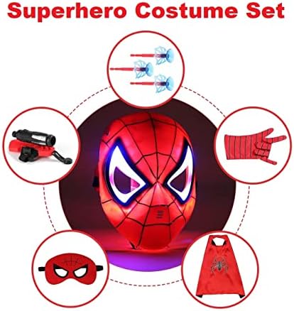 Superhero Costume Masks Capes Boys,Web Shooter Super Heros Toy- Web Goves Costume Kids for Christmas Halloween Birthday Party Over 3 Years Old