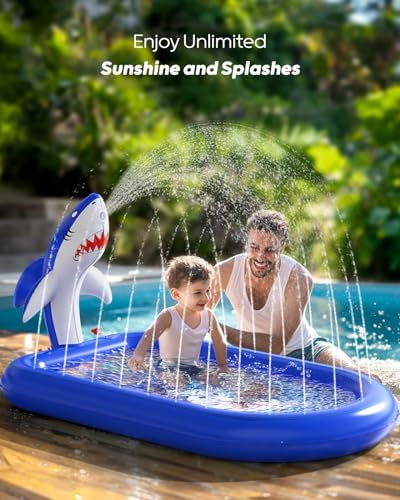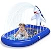 QPAU Splash Pads for Toddlers 1-3, Dark Blue Shark Splash Pad for Kids, Outdoor Play Mat for Babies, Inflatable Sprinkler Pool for Birthday Girl Gifts 1 Year Old Girl