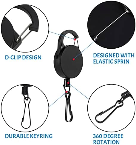 - SIZE : Built-in free rewinding wire rope and 360 degree rotating clip, wire rope length of about 60cm/ 23.6 inches.