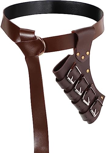 Silkfly 2 Pcs Medieval Sword Belt with Leather Sword Frog Pirate Belt Renaissance Costume Cosplay Set for Knight Pirate (Brown, Dark Coffee)