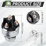 【Ignition Key Switch】Universal Key Ignition Switch compatible with car, truck, tractor, trailer, forklift, agricultural and plant applications, and more equipment. Rated 30A at 12v DC 【4 Position Acc/Off/IGN/Start】4 Position Ignition Key Switch controls 4 functions, Acc/Off/IGN/Start. Studs are labeled for easy wiring: Battery-Ignition-Accessories-Start 【High Quality】The ignition switch is made of high-performance ABS and high-quality brass, with safety, durability and excellent conductivity 【Easy to install】Designed with a screw lock-nut, simply connect wires to the appropriate stud. Note: this switch does not need to be grounded. Your loads connected to the switch need to be grounded 【Package include】: 1pcs Ignition Switch, 2pcs Keys, 4pcs Nuts. Direct replacement and operation without any special tools or equipment