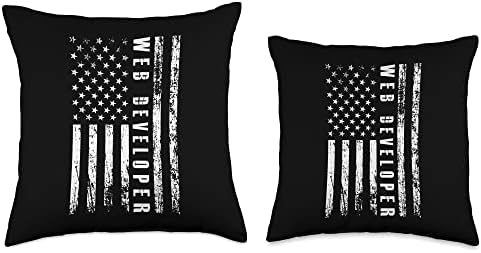 Computer Programmer Coder IT Admin Gifts Men Women Web Developer USA Flag Programmer Computer Science Coder Throw Pillow, 18x18, Multicolor