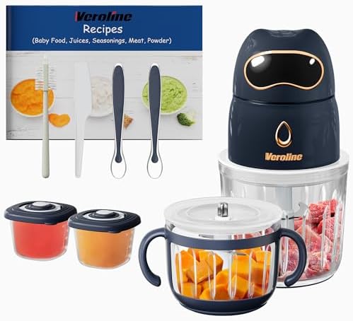 - 【10-in-1 Baby Food Maker Set】Veroline baby food maker set comes with 1 * baby food maker, 1 * 600ml mixing cup, 1 * 300ml mixing cup, 2 * baby food storage containers, 2 * silicone spoons, 1* small spatula, 1*cleaning brush and 1 * baby food recipes. This set meets the entire need from baby food making, baby food storage and feeding guidelines, making it a great baby shower gift.
