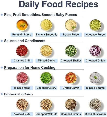 - 【Easy to Use and Clean】With a simple one-button operation, you can easily use the baby food blender to blend, puree, or chop your baby food. The mixing bowl, blades and lid are completely separated from the body and can be easily disassembled and cleaned. This baby food maker also comes with a recipe book to help new parents get better at using it.