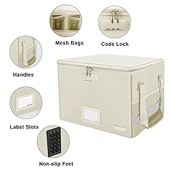 - ENGPOW File Box with Lock, Fireproof Document Box with Zipper Lid,Collapsible File Storage Organizer Box Filing Box with Handle,Portable Home Office Safe Box for Hanging Letter/Legal Folder,Beige