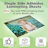 Peel and stick, No machine needed. Koala self-adhesive laminating sheets are easy and convenient to use for laminating your important documents or stickers. Glossy clear single side self laminating sheet has a strong adhesion on the back. It can permanently adhere to your documents to provide long-term protection. Easy-peeling backing and high flatness of these self seal laminating sheets will make your laminating job much easier. The grid on the backing can help you to easily align, measure and cut the self laminating sheet into the specific sizes you need. Perfect for protecting and preserving your documents, photos, menus, cards, certificates, name tags, artwork and more; safe to use with a dry eraser marker. Be creative, you can also use the self adhesive laminating sheets to make handicrafts, like dried flowers and specimens, or to laminate stickers.