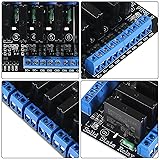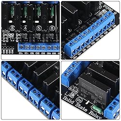 - Features: Input Power: 5V DC (160MA) 5V solid state relay 240V 2A, the output with a resistive fuse 240V 2A. Size: 2 Way: 55 * 33 * 25 (L * W * H) 4 Way: 57 * 55 * 25 (L * W * H) 8 Way: 106 * 56 * 25 (L * W * H) The Input Control Signal Voltage: High Level Module: (0-2.5V state low level relay ON) (3.3-5V state high level relay OFF) Low Level Module: (0-2.5V state low level relay OFF) (3.3-5V state high level relay ON) are 2.54CM pin and blue KF301 terminal control line is more convenient. Input Section: DC +: Connect the power supply positive (according to the relay voltage) DC-: Connect the power supply negative CH2: 2-channel relay module signal to trigger the end (high level trigger effective) CH4: 4-channel relay module signal to trigger the end (high level trigger effective) CH8: 8-channel relay module signal to trigger the end (high level trigger effective) High and Low Meaning: High-level trigger refers to the signal trigger side (IN) and the negative power supply has a positive voltage between the positive and the power supply is usually connected to the trigger side of a trigger, when the trigger side voltage or trigger to reach the trigger Voltage, the relay is pull. Low-level trigger refers to the voltage between the signal trigger terminal and the negative terminal of the power supply is OV, or the voltage of the trigger terminal is lower than the voltage of the positive terminal of the power supply. When the voltage is low enough to trigger, the relay is pulled in, The negative side of the power supply is connected to the trigger side of a trigger, so that the relay is pull.