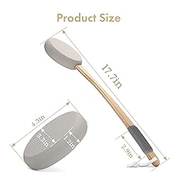 Curved design: The 17-inch handle adopts a curved design. It is long enough to effortlessly apply lotion to your back, legs, feet, and other hard-to-reach areas. Even lotion application: Thanks to the special texture of our application pads, you can quickly and easily apply lotions, creams, ointments, and gels without drips, leaving your skin silky smooth and evenly coated. Easy to clean and dry: Lotion applicator for back is designed with a lanyard. Just rinse it with water after each use and hang to dry. Replaceable pads: Each package comes with 4 replaceable pads, so you'll have 4 lotion applicator to enjoy. The pads are made from EVA material that is soft to your skin without absorbing lotion. Premium materials: Our lotion applicator features a wooden handle with a textured rubber sleeve that offers a non-slip grip, making it easy and comfortable to use.