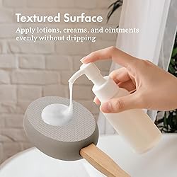 - AmazerBath 17 Inches Lotion Applicator The package comes with four replaceable pads. The pads are made from EVA material, soft to your skin while not absorbing any lotion you put on them. Spread lotion evenly The surface of the application pads uses a special texture, can apply lotions, creams, ointments and gels without dripping, and spread lotion evenly. Scientific design The wooden handle is ergonomic, and the textured rubber sleeve is non-slip, which can provide you with a better grip.
