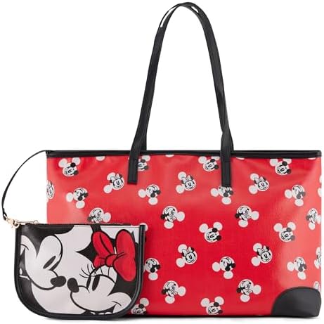 Disney Mickey and Minnie Tote bag - Girls, Boys, Teens, Adults - Mickey and Minnie Mouse Faux PU Leather Cosplay Tote Handbag with Zipper Pouch