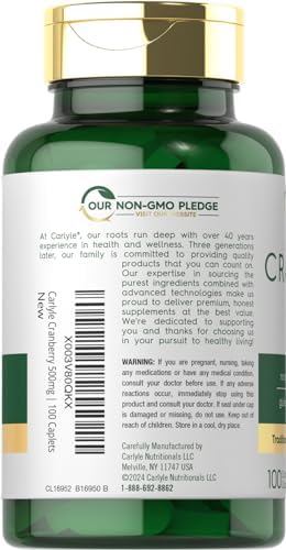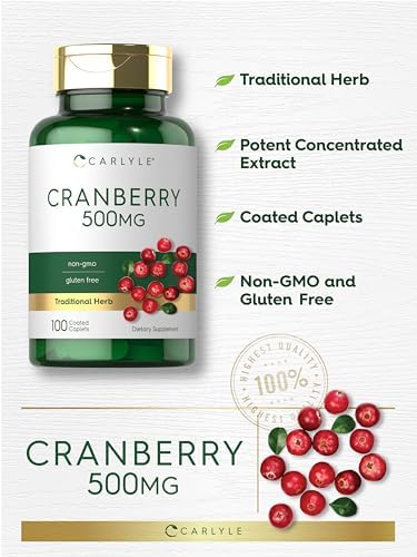 Carlyle Cranberry Pills | 500mg | 100 Caplets | Non-GMO, Gluten Free Supplement for Women & Men