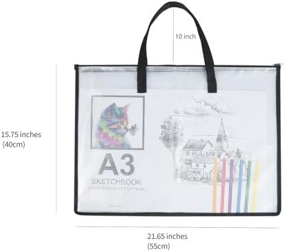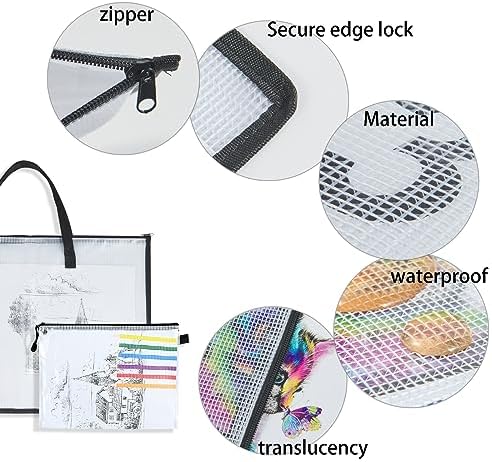 - PACKAGE INCLUDED: This art portfolio bag set contains 3 pieces of 15.75 x 21.65 inches and 4 pieces of 9.25 x 12.6 inches transparent art portfolio bags with durable zipper and carrying straps. Two different sizes with transparent design are easy to organize your items.
