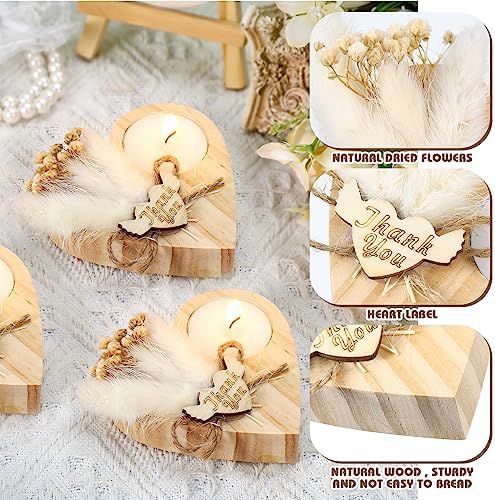 - Gran Cantidad: el paquete incluye favores de boda para invitados en masa de 50, incluyendo soporte de madera en forma de corazón, flor seca, velas, etiqueta de madera y etiqueta de papel, que es una gran cantidad, asegurando que los invitados a su fiesta de bodas reciban un memorable recuerdo de agradecimiento, puede usar con confianza