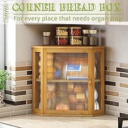 BMOSU Corner Bread Box for Kitchen Countertop Double Layer Bamboo Wooden Bread box Large Capacity Bread Storage Bin(Natural, Extra Large)