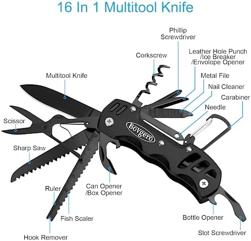 - 【Bovgero Multi Tool Knife】Premium and light multi tool knife is a good friend when we enjoy in traveling, riding, fishing, hiking, camping, DIY, and also useful in outdoor survival and daily usage.