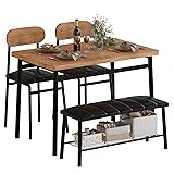 Dining table for 4: Includes a spacious table, 2 high-back chairs & 2-person bench, this dining table set allows 4 persons to have a small get-together for eating together. Ergonomic design and large sitting seats ensure a comfortable sitting experience. Perfectly for Small Space: Chairs and bench are able to be stored underneath the dining table to save space while it is not in use. Very easy to keep everything in order and tidy once owning this 4 piece dining set with bench at kitchen and dining room. Multifunctional Use: This is a set of dining table and chairs with bench, which can not only be used as dining table set, but sometimes can be working table at home as well. Storage racks provides spaces for your stuffs, such as books, dishes and etc. Space-Saving Design: Two armless chairs and the bench can be tucked under the table without taking up space. Also, the extra rack under the bench meets the needs for sitting & storing. All in all, this table set is suitable for limited living space. Durable & Sturdy: Made of wear-resistant MDF and reinforced steel, this dining set ensures great durability and sturdiness. Thanks to the heavy-duty metal frame, the high load capacity of the table, chair, and bench is 200 lbs, 330 lbs, and 660 lbs. Quick Set-Up: With all parts given in the package, you can assemble the table and chair set easily by following detailed instructions. Since it has a waterproof tabletop, daily cleaning is a breeze with a damp towel.