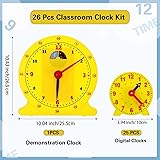 Lenwen 26 Pcs Classroom Clock Kit 24 Hours Learn to Tell Time Teaching Clock Toy for Kids Teaching Time Resources for Kids Learning Teacher Classroom Supplies