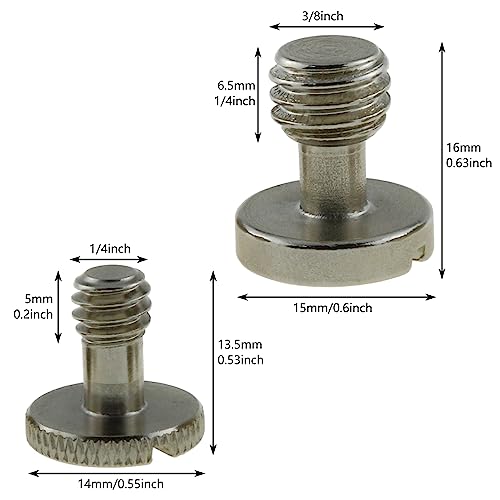 6pcs Camera Quick Release Screws - 3pcs 3/8 Inch and 3pcs 1/4 Inch Tripod Monopod Quick Release (QR) Plate Camera Screws