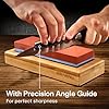 - Stable & Safe Sharpening: The non-slip bamboo base with a silicone grip keeps the stone steady, while the angle guide ensures precise blade positioning, making sharpening easy and accurate.