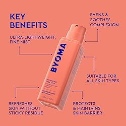 BALANCE + SOOTHE: This ultra-fine, pH-balanced, face mist is the ultimate quick fix to refresh tired or angry skin. Spritz your way to a hydrated skin + protected skin barrier. REFRESHING RELIEF: Powerful duo of Allantoin and probiotic ferment help hydrate the skin + support the microbiome, shielding skin from environmental stressors + calming dry, irritated skin. BARRIER-BOOSTING: BYOMA’s carefully researched Tri-Ceramide Complex is designed to mimic and replenish the essential lipids found in skin. Formulated to rebuild the skin barrier + restore moisture levels, ensuring skin functions at its best every day. THE ULTIMATE SKIN-COMPATIBLE SOLUTION: Dermatologist tested + approved skin care, soap-free, non-comedogenic, alcohol + fragrance-free, vegan + cruelty free. Suitable for all skin types. BACKED BY SCIENCE: Efficacy is the new luxury. That's why BYOMA delivers clinically-proven formulas backed by science + powered by actives. When we stop stripping our skin + start boosting our barrier, we find the key to balanced, brighter skin.