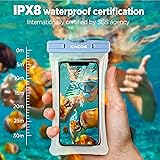 IPX8 Certified CACOE Waterproof Case:With the excellent IPX8 waterproof seal, this 100% waterproof phone case protects the devices in a variety of environments. The maximum water depth is 30m, it features easy snap and lock access that ensures a perfect seal. Protects against water, snow, dust, sand and dirt.(NOTE: Please test underwater before use). 2023 Upgraded Universal Waterproof Phone Case: Suitable for smartphones under 7.0 inches. Using TPU material, it has high transparency and more sensitive touch, which is very convenient for taking pictures, watching videos and reading information. (Some large-screen mobile phones need to remove the protective case) Upgraded Floating Function: Four-sided double airbags for stronger buoyancy,prevent your phone from sinking into the water. Upgraded Seal Tech:All-new snap-and-lock seal clip and fully-enclosed rim help waterproof phone case keep your phone well protected from water intruders for beach, pool, fishing, swimming, boating, kayaking, snorkeling and water park activities. Please note:1. This waterproof cell phone case is not for use with thick case cell phones. 2. Due to the water pressure and water temperature below a certain depth, it may affect the function of the cell phone, such as the touch screen. In such a case, please press the volume button to take a picture. 3. Face ID and Home button function are affected (maximum water depth is 30m). Special Note: To prevent defects in individual products, please use a paper towel to test the waterproofness first. If you find any problems, please return or exchange.