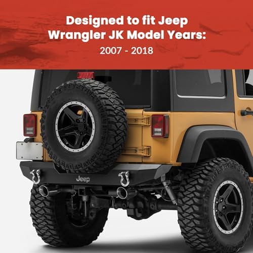 - Versatile Compatibility Specifically engineered to seamlessly fit 2007, 2008, 2009, 2010, 2011, 2012, 2013, 2014, 2015, 2016, 2017, 2018 Jeep Wrangler JK models. This bumper is a testament to precision engineering and uncompromising quality. With its sleek design and LED-backlit Jeep logo, this bumper enhances the aesthetic appeal of your Jeep and add a touch of individuality to your ride. Note: Built-in hitch receiver is not rated for towing.