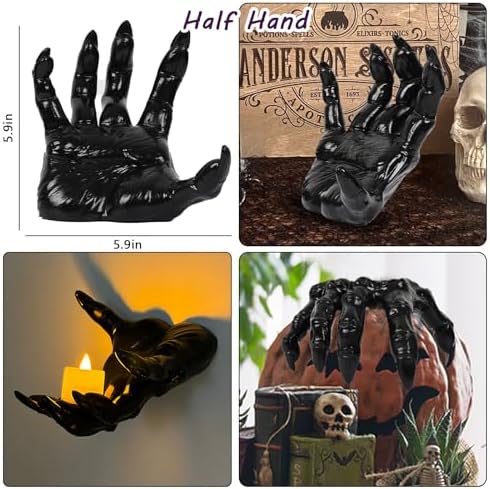 - Multifunctional Halloween Decor: Mount these hands with screws or double-sided tapes to simply adorn walls, doors, and furniture for a spooky touch. Or use them to display your jewelry, lamps, towels, candles, keys etc.