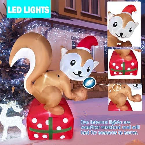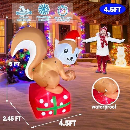 - 【CHRISTMAS INFLATABLE】5 FT Christmas Inflatable Squirrel Standing on Gift Box is ideal Christmas blow-up yard decorations. The Christmas Inflatables will light up your yard and welcome your lovely neighbors