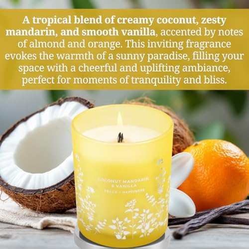 Coconut Mandarin Vanilla Scented Candle - Wood Wick Soy Candle 10.6 oz – Aromatherapy Tropical Coconut Citrus Candles - Long-Lasting Clean Burn