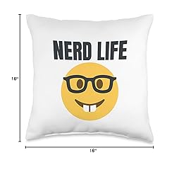 100% Polyester Nerd Life Emoticon for women men kids boys girls youth 100% spun-polyester fabric Double-sided print Filled with 100% polyester and sewn closed Individually cut and sewn by hand Spot clean/dry clean only