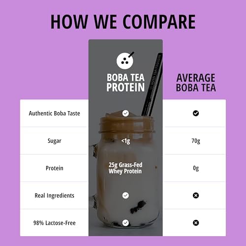 Boba Tea Protein Taro Milk | 25g Grass-Fed Whey Protein Isolate Powder | Gluten-Free & Soy-Free Bubble Tea Drink | Real Ingredients & Lactose-Free Protein Drink | 25 Servings