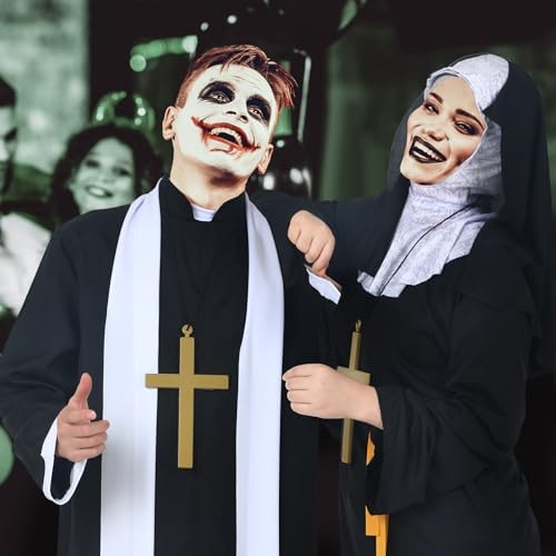 Shinymoon Halloween Priest Costume Nun Costume with Robe Cross Accessories Crucifix Necklace Prop for Women Men Adult, Black (Large)