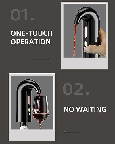 - One-Touch Operation: Enjoy effortless wine pouring with our user-friendly electric wine aerator. The one-touch method means no complicated settings or attachments, making it accessible to all