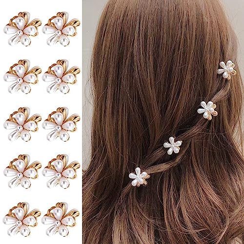 10 Pcs Small Pearl Hair Claw Clips for Women Girl, Mini Pearl Flower Claw Design, Sweet Daisy Artificial Bangs Decorative Hair Accessories