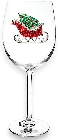 THE QUEENS' JEWELS Red Christmas Sleigh Jeweled Stemmed Wine Glass, 21 oz. - Unique Gift for Women, Birthday, Cute, Fun, Not Painted, Decorated, Bling, Bedazzled, Rhinestone