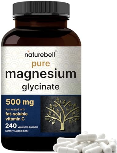 NatureBell Magnesio Glicinato 500mg, 240 Cápsulas | 100% Quelado y Purificado | Apoyo para el Sueño, Músculos y Corazón | Testeado por Terceros, No OGM, Sin Gluten