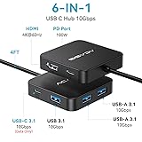 - USB C Hub Long Cable 4FT 10Gbps, Multiport Adapter with 4K 60Hz HDMI, 100W Power Delivery, 3 USB A3.1+1 USB-C 3.1 Data Port, USB c to HDMI Adapter for MacBook, Dell, Lenovo, Surface, iPad PRO